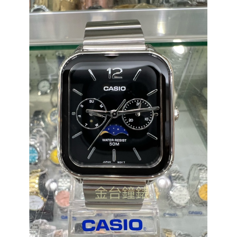 【金台鐘錶】CASIO卡西歐 MTP-M305D-1A 鋼錶 月相,星期,日期顯示 50m防水 寬34mm 壓入式底蓋