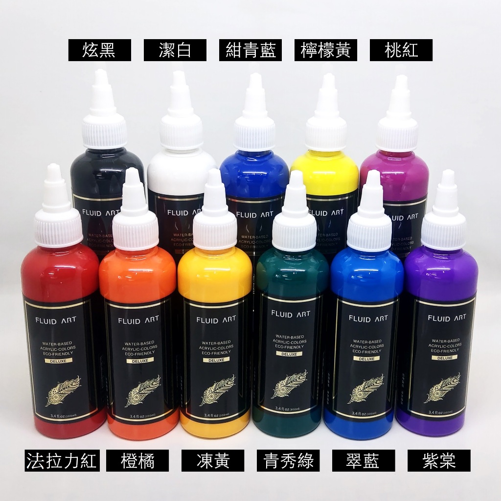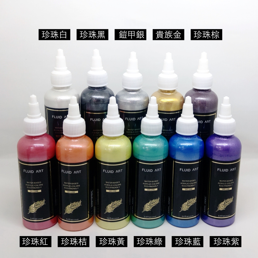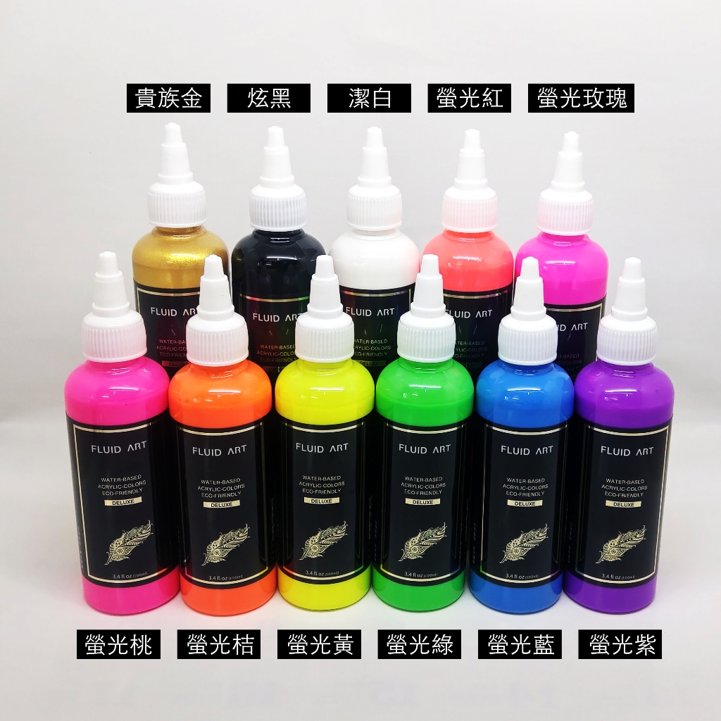 【金羽毛】 流體 顏料 單瓶裝 100ml 【台灣製】 當天出貨 馬卡龍 彩色 螢光 金屬 壓克力顏料 流體熊 創作