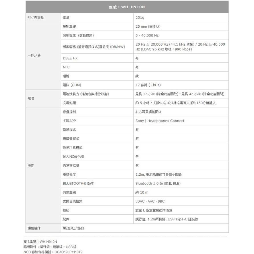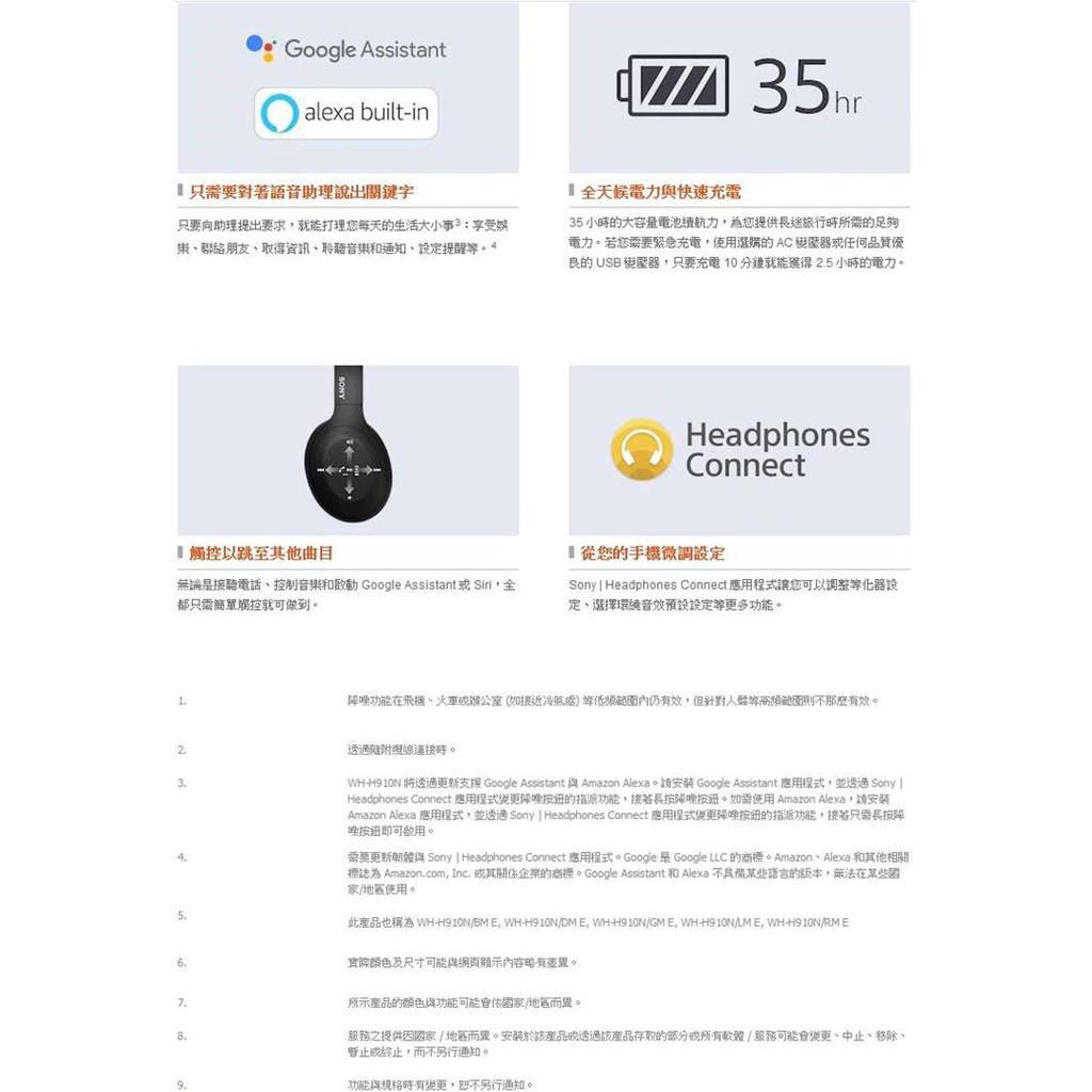 ●金響電器,SONY WH-H910N,公司貨,無線藍牙降躁耳罩式耳機,Hi-Res音源,免持通話,快充,WHH910N