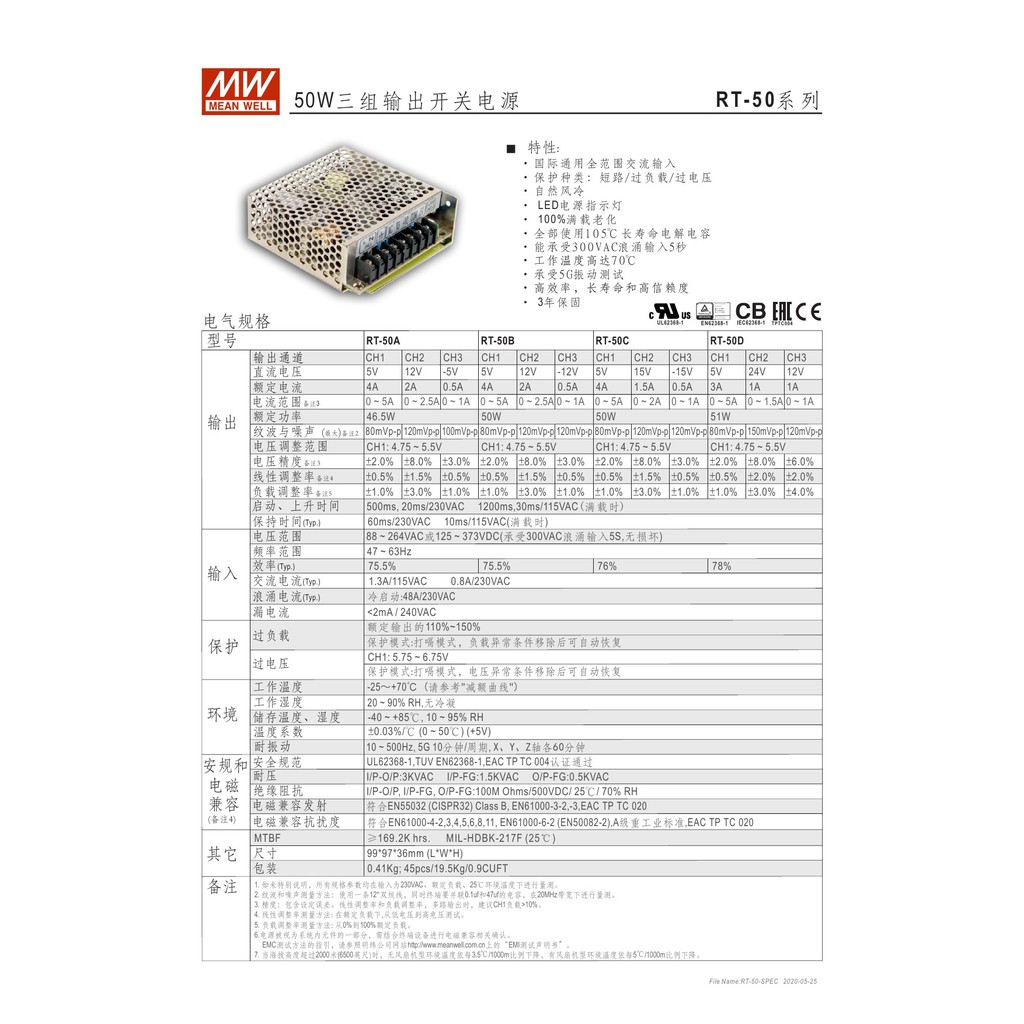 【附發票有保固】RT-50A +5V +12V -5V 3組輸出 明緯 MW 工業電源供應器 變壓器~NDHouse