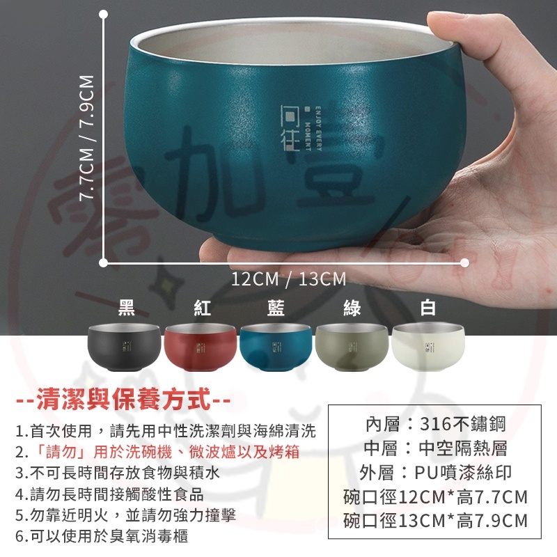 【零加壹】台灣出貨💯頂級316不鏽鋼碗 食品級 雙層隔熱防燙 飯碗 露營 烤肉 湯碗 防摔 泡麵 醫療級 雙層碗 316