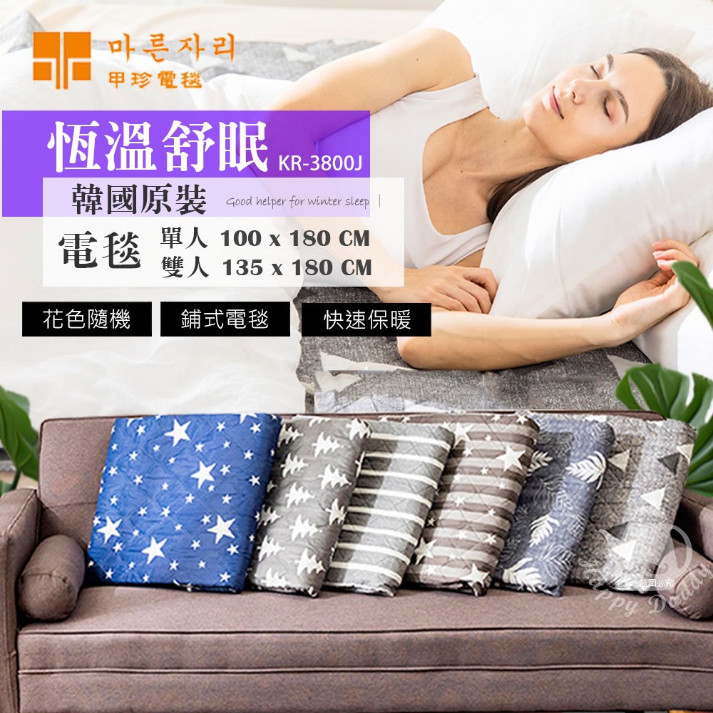 【韓國甲珍電毯】七段恆溫舒眠型電毯電熱毯 KR3800J(韓國製) 單人雙人電熱毯 露營電毯 可水洗 花色隨機 保固三年
