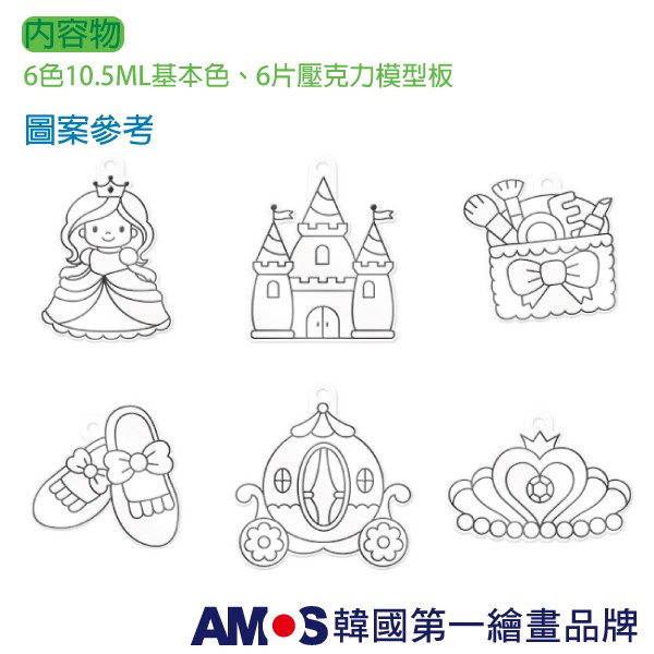 【韓國AMOS】 6色公主主題模型板DIY玻璃彩繪 吊飾創作 手作美勞‖呆豆省省購 現貨‖