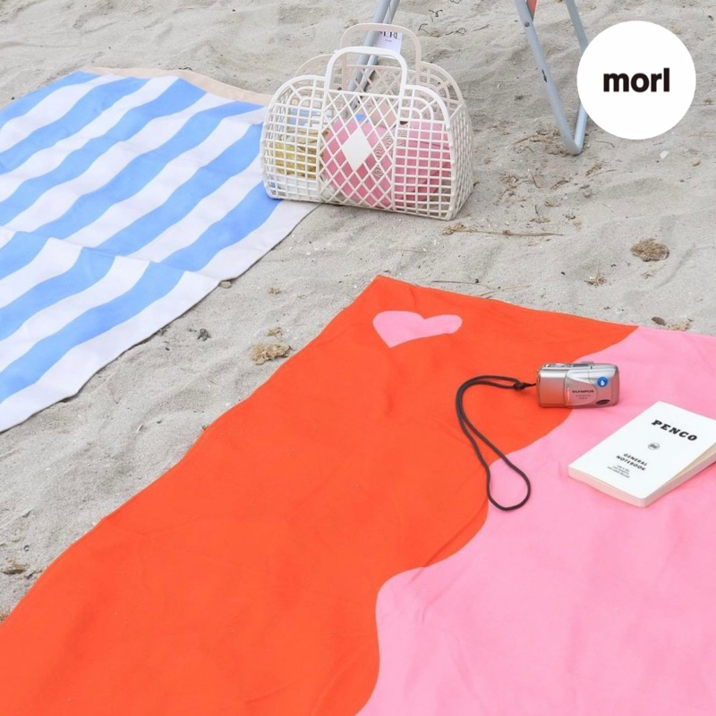 【預購】morl 韓國代購🍈新色條紋拼接 愛心撞色毛巾 野餐墊 沙灘墊