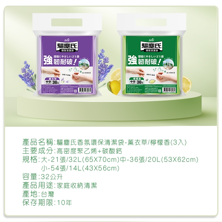 【驅塵氏】台灣製香氛環保清潔袋箱購(3捲1袋,共20袋一箱)-(平底垃圾袋)-薰衣草/檸檬香(小/中/大)可選