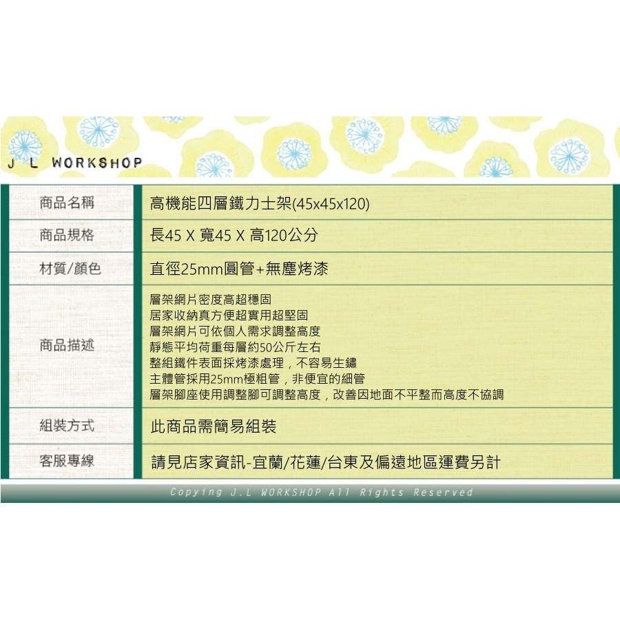 【高機能四層鐵力士架45x45x120】鐵力士架 鐵架 層架 波浪架 置物架 收納架 JL精品工坊