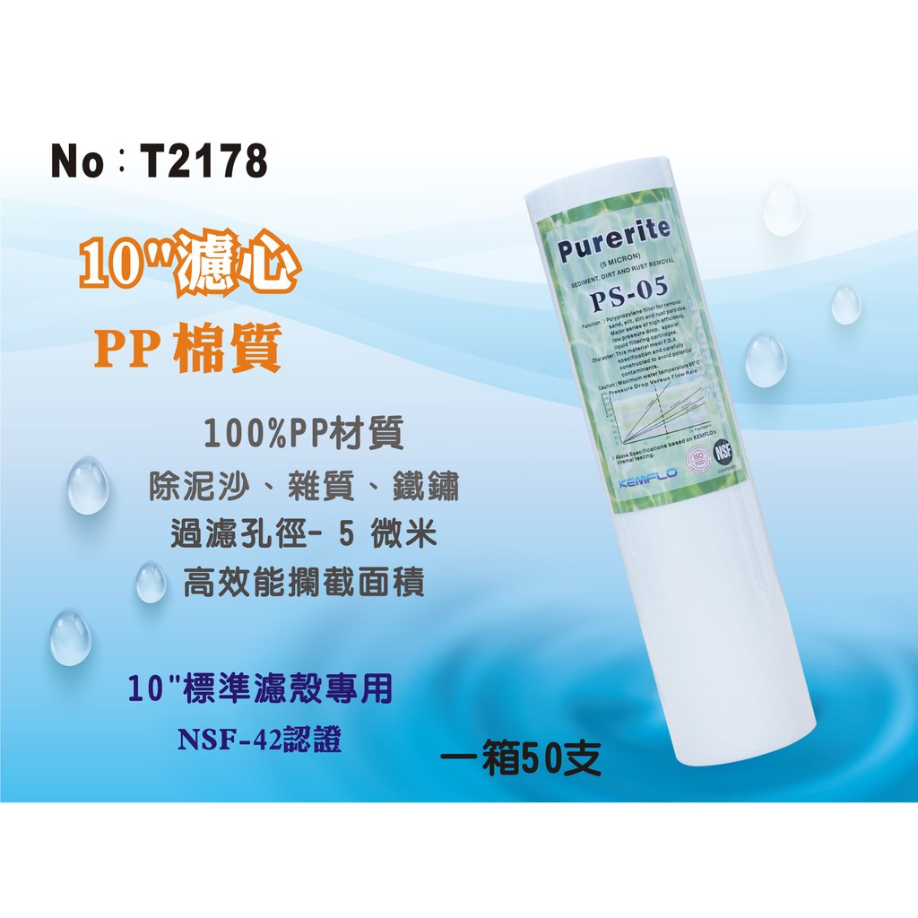 【龍門淨水】10英吋NSF-PP綿質濾心5m 50支/箱.餐飲濾水器.淨水器.飲水機.RO純水機.過濾器(貨號T2178