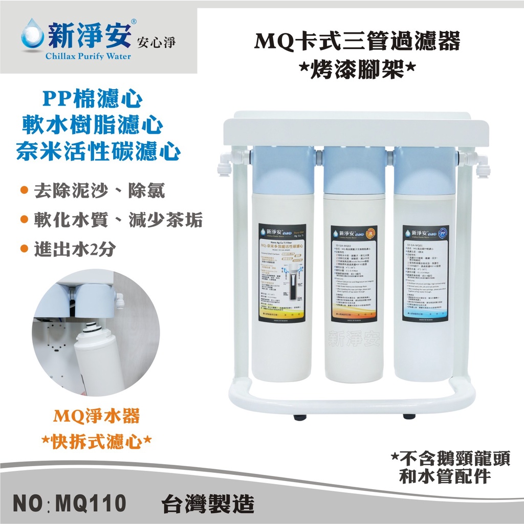 【龍門淨水】MQ快拆卡式三管淨水器 MQ-PP棉5微米+軟水樹脂+奈米活性碳 過濾器(MQ110)