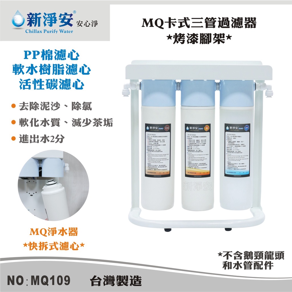 【龍門淨水】MQ快拆卡式三管淨水器 MQ-PP棉5微米+軟水樹脂+活性碳 除泥沙、餘氯(MQ109)