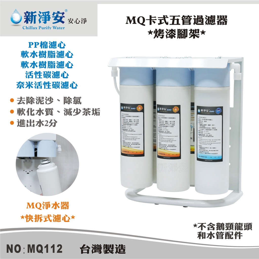 【龍門淨水】MQ快拆卡式五管淨水器 MQ-PP棉5微米+軟水樹脂+奈米活性碳 過濾器(MQ112)