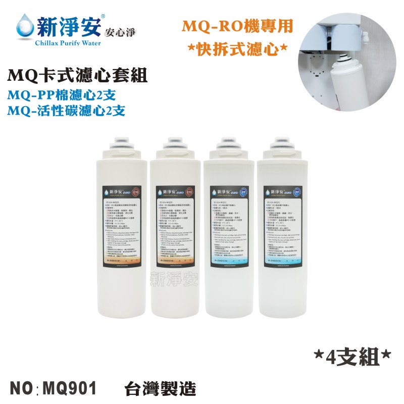 【龍門淨水】MQ快拆卡式濾心4支套組 PP 活性碳 除泥沙雜質 餘氯 台灣製造(MQ901)