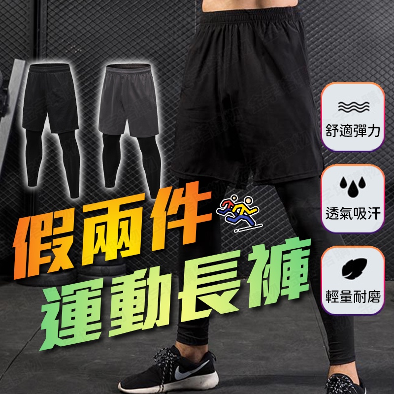 【🇹🇼快速排汗面料!現貨免運 快速出貨】假兩件運動褲 假2件運動褲 假兩件褲 假兩件短褲 假兩件運動褲男 防曬 涼感