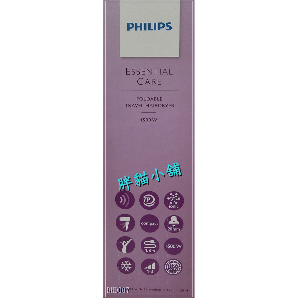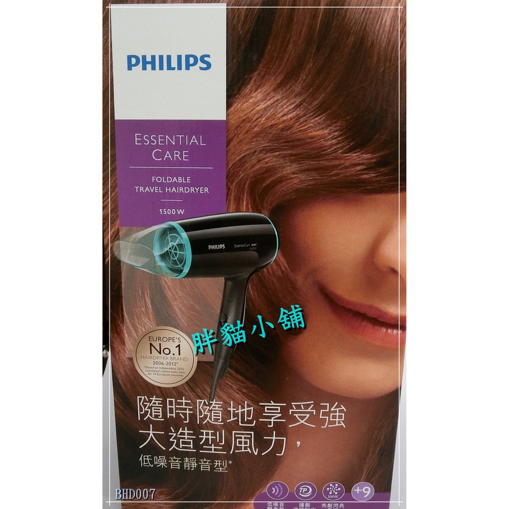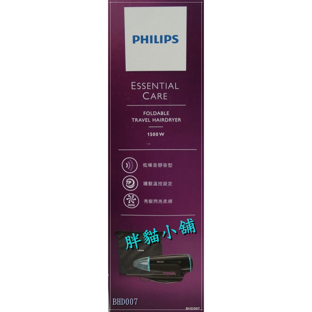 【 原廠 】PHILIPS 飛利浦 超靜音負離子折疊吹風機 BHD007 胖貓小舖💖