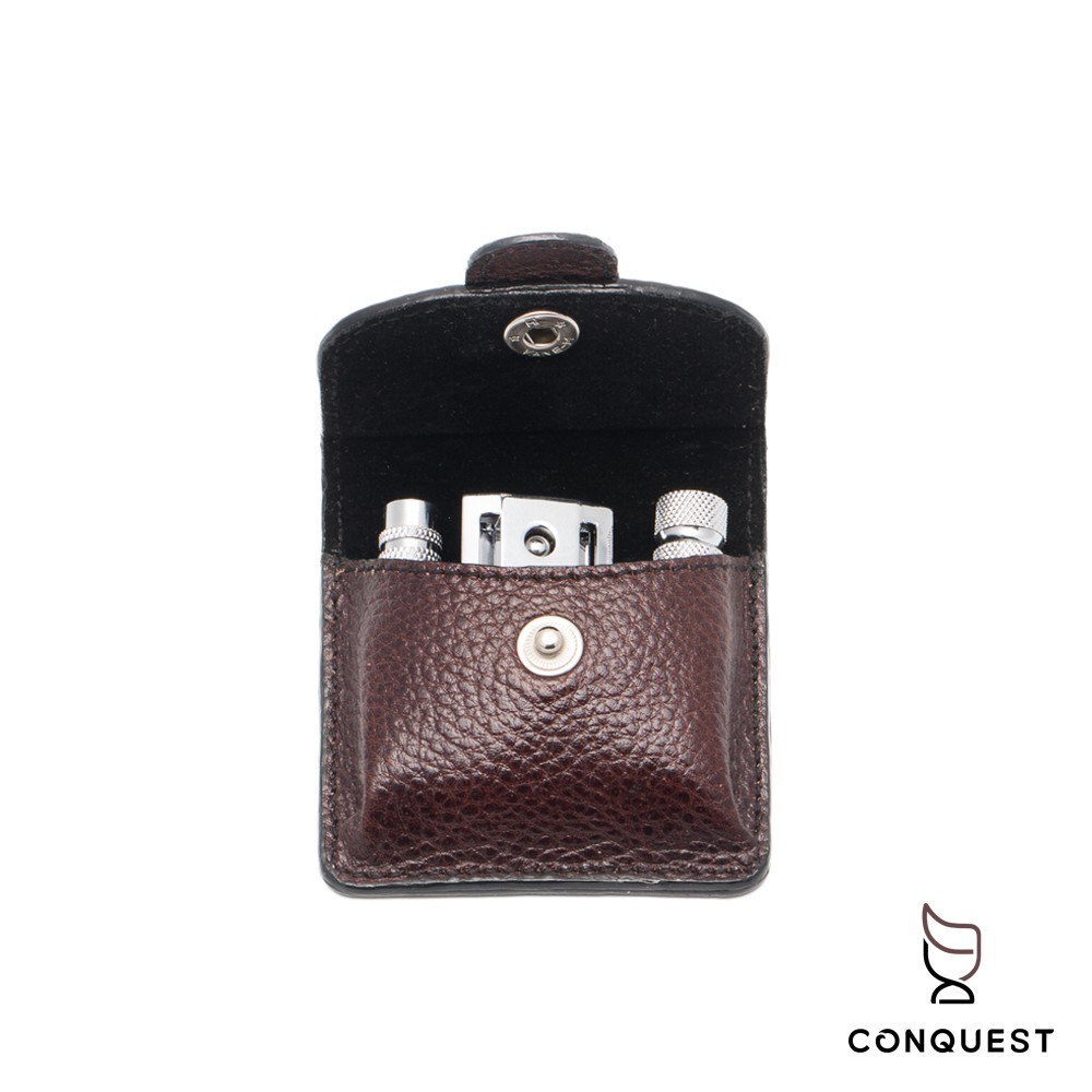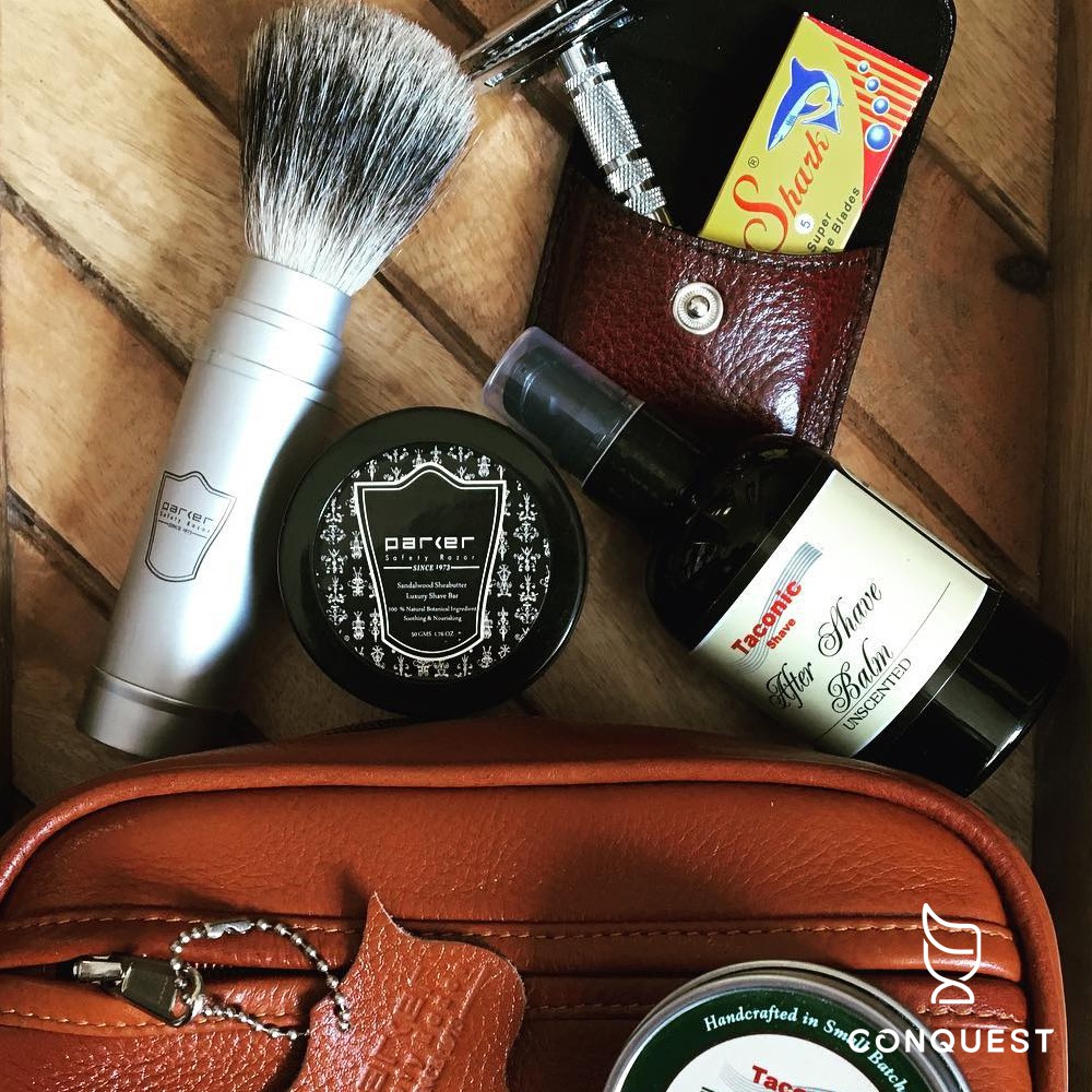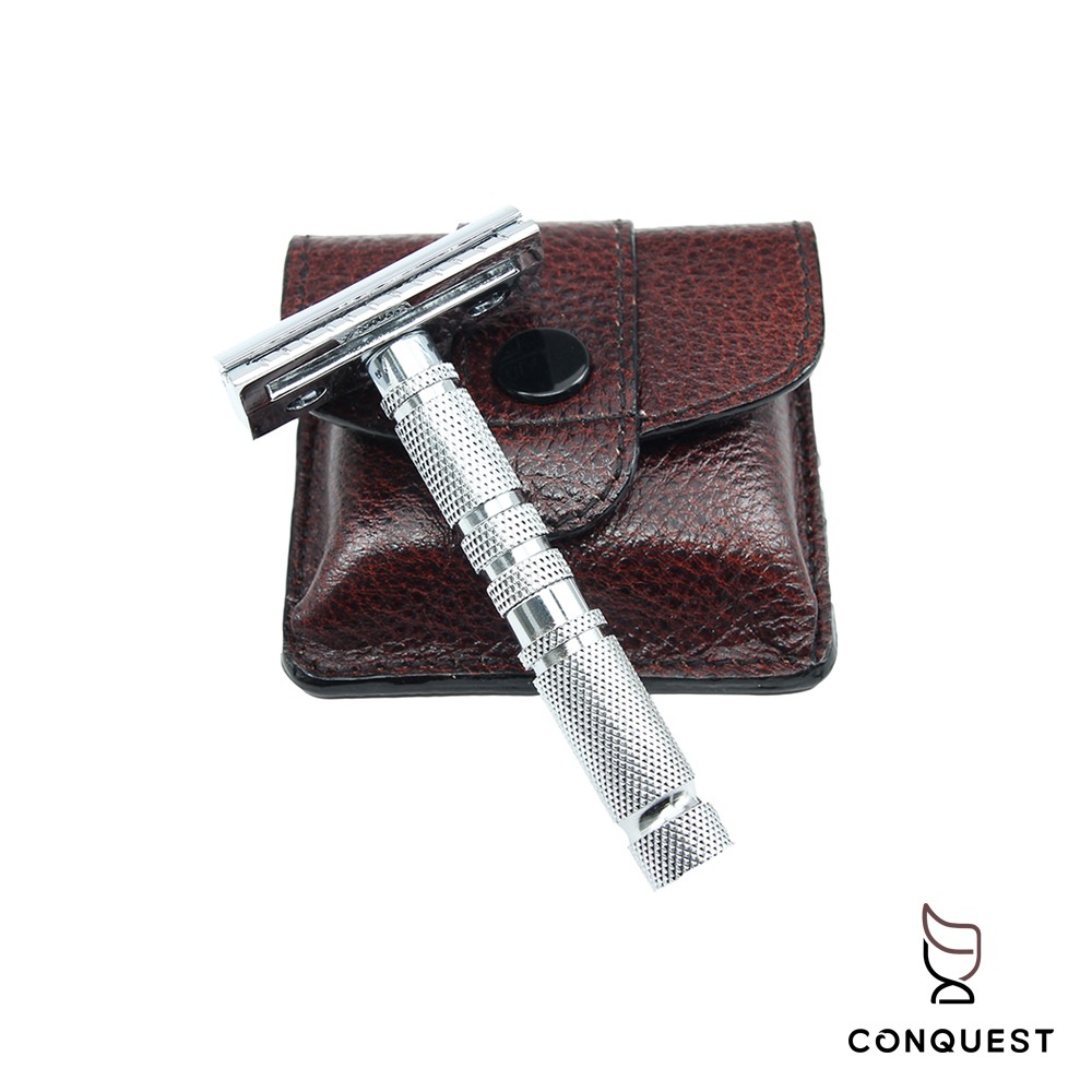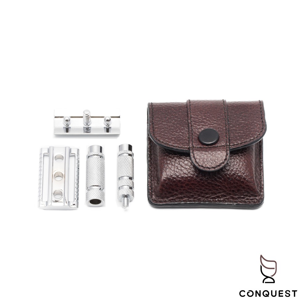 【 CONQUEST 】美國 Parker A1R 四件式雙刃安全旅行刮鬍刀 封閉式刀頭設計 可拆卸收納 附贈皮革收納套