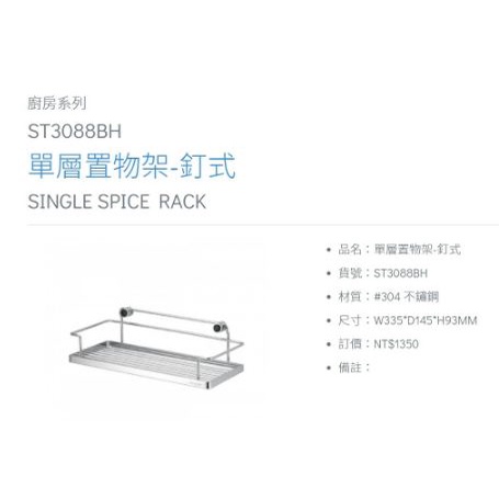 【 DAY&DAY日日家居生活精品】不鏽鋼單層置物架-釘式(ST3088BH)