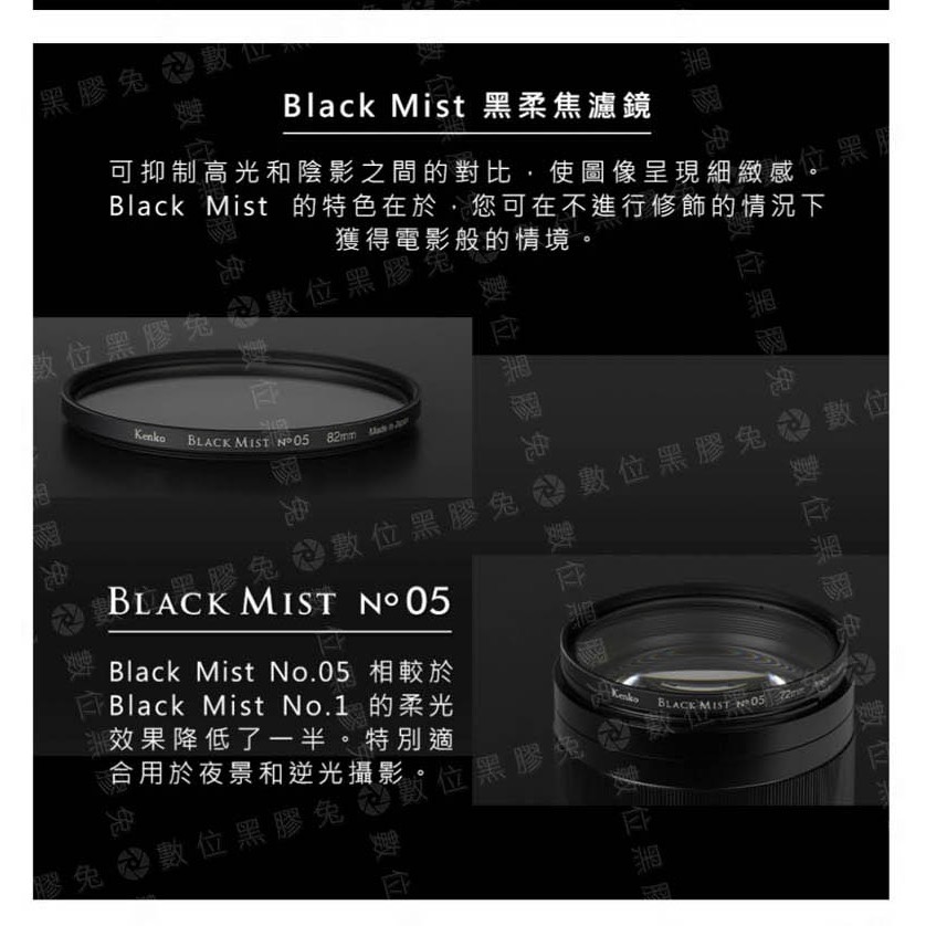 【 Kenko Black Mist No.5 黑柔焦 濾鏡 】 黑柔焦鏡片 數位黑膠兔