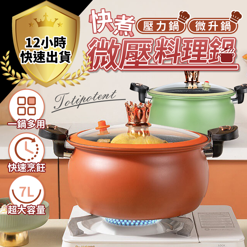 【12H出貨 免運費】7L 微壓鍋 料理鍋 快煮鍋 微升鍋 悶燒鍋 壓力鍋 煮鍋 蒸鍋 高壓鍋 微壓鍋 麥飯石 火鍋