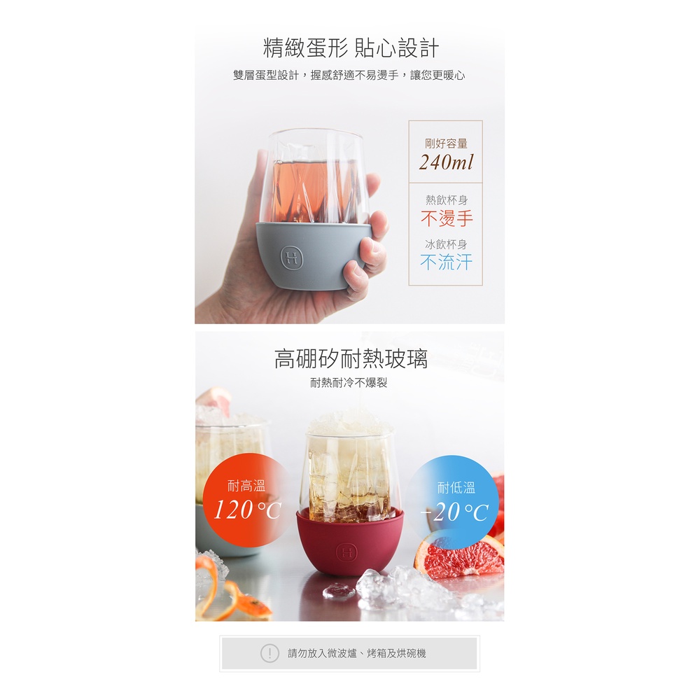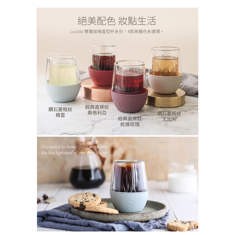 【2件95折】美國 HYDY LUCIDO 雙層玻璃杯 240ml 菱格紋杯 (尤加利) 蛋型杯 隔熱杯