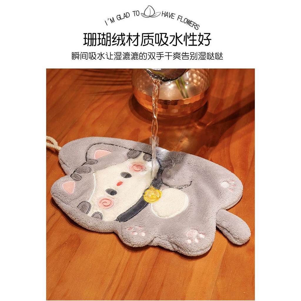 【F】【30天熱銷1萬件】貓咪擦手毛巾吸水速幹不掉毛珊瑚絨擦手巾掛式可愛衛生間抹手布