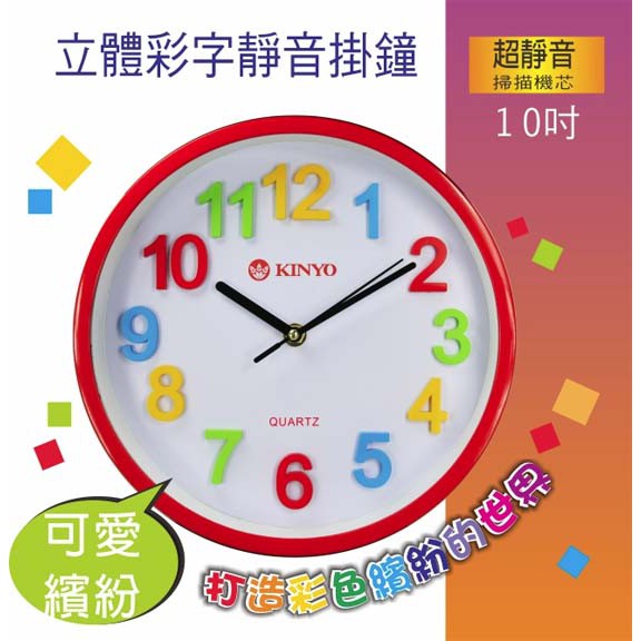 【3CTOWN】含稅附發票 KINYO金葉 CL-128 立體彩字靜音 掛鐘 時鐘