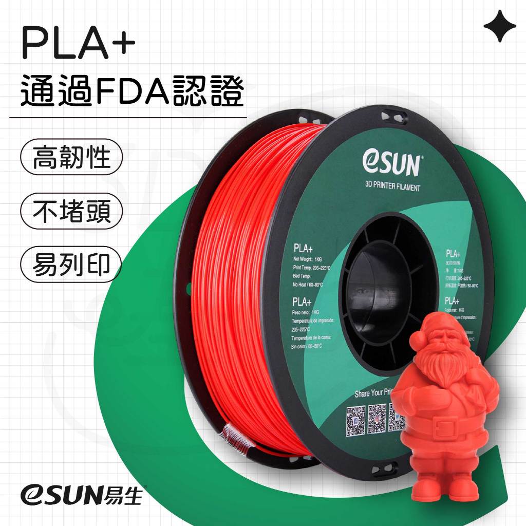 【3D列印基地】eSUN 易生 PLA+ 3D列印線材 高韌性 不堵頭 易列印 FDM 列印機耗材 1.75 PLA