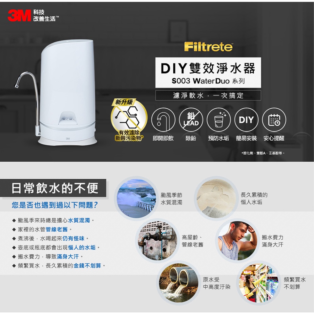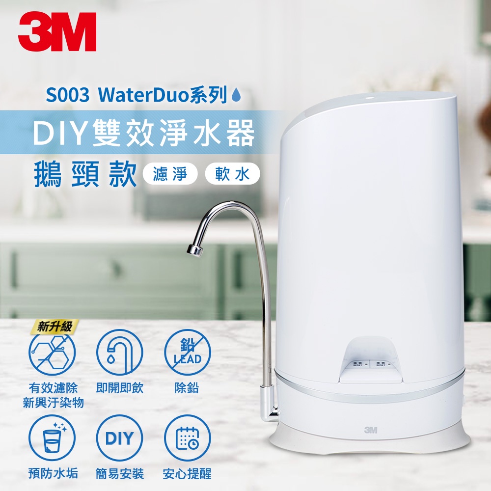 【3M】S003 WaterDuo DIY濾淨軟水雙效型生飲淨水器-鵝頸款