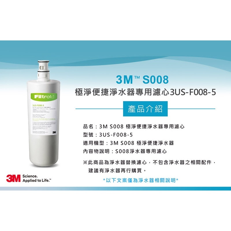 【3M原廠公司貨】 S008淨水器替換濾心 F008活性碳濾心