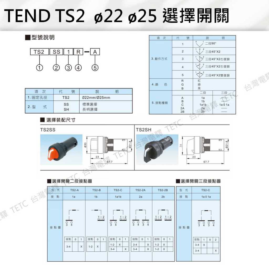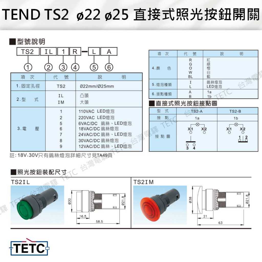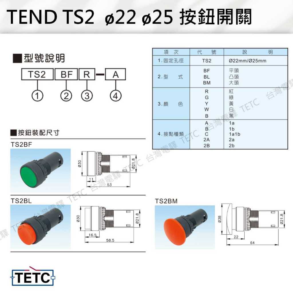 【8H快速出貨】天得 TEND TS2 ø22 ø25 簡單式按鈕開關 平頭 凸頭 大頭 1AB接點 緊急停止按鈕開關