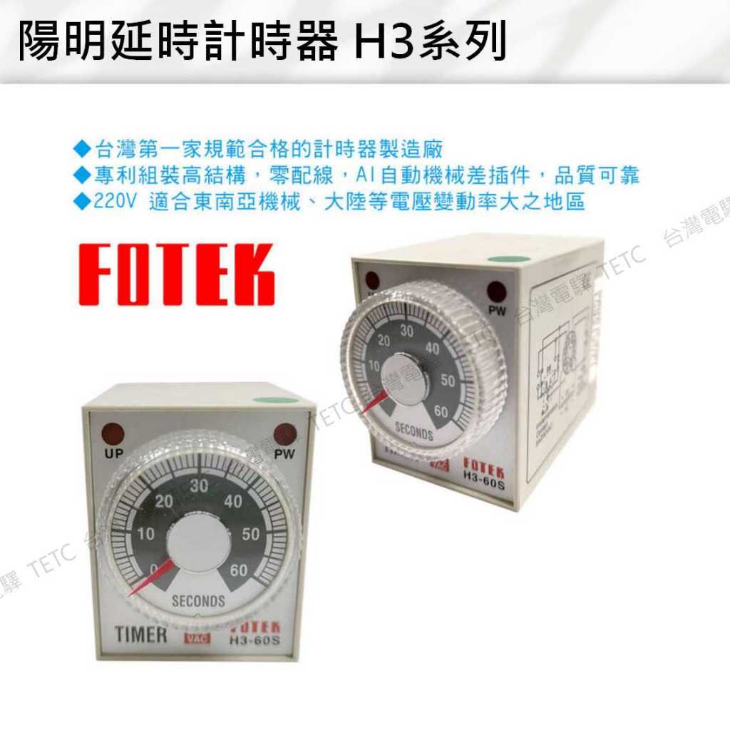 【8H快速出貨】FOTEK陽明計時器H3-1S/3S/6S/10S/60s 220V延時計時器 公司貨 #台中實體店面