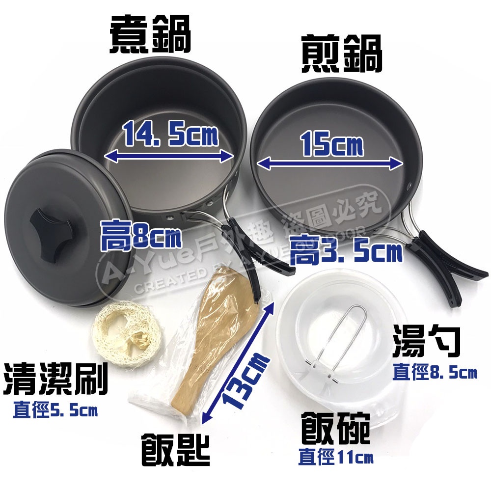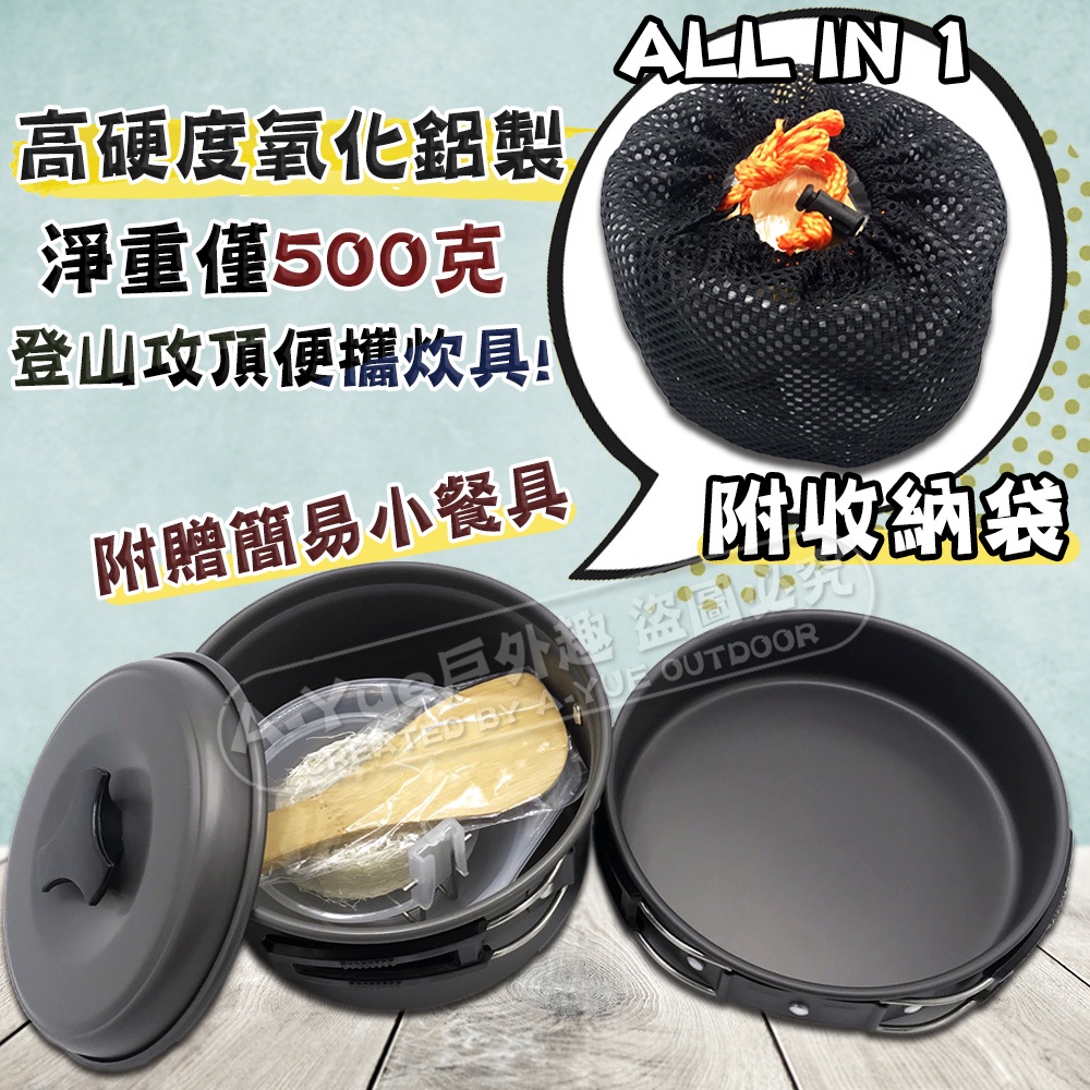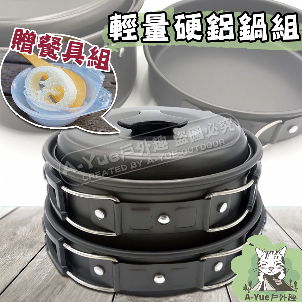 【A-Yue戶外趣▲現貨速發】登山雙人鍋具組 攻頂鍋 輕裝露營鍋 煎鍋 湯鍋 戶外鋁鍋 露營廚具 野營登山炊具 機車露營