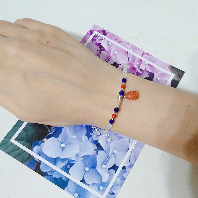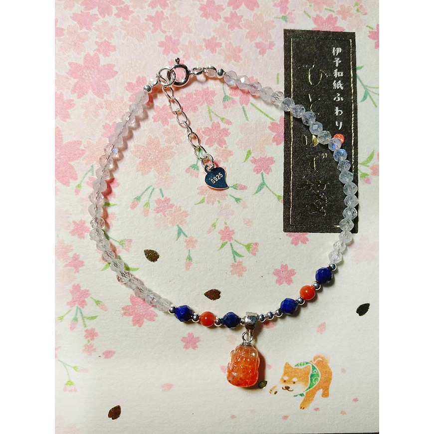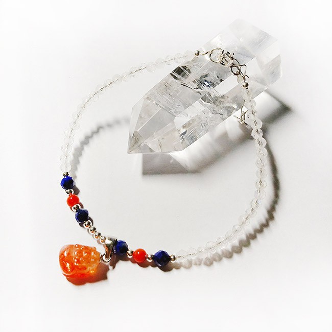 【A1寶石】金典草莓貔貅月光石青金石南紅高級水晶925純銀手鍊--天然能量招財貴人運旺(贈白水晶淨化碎石)