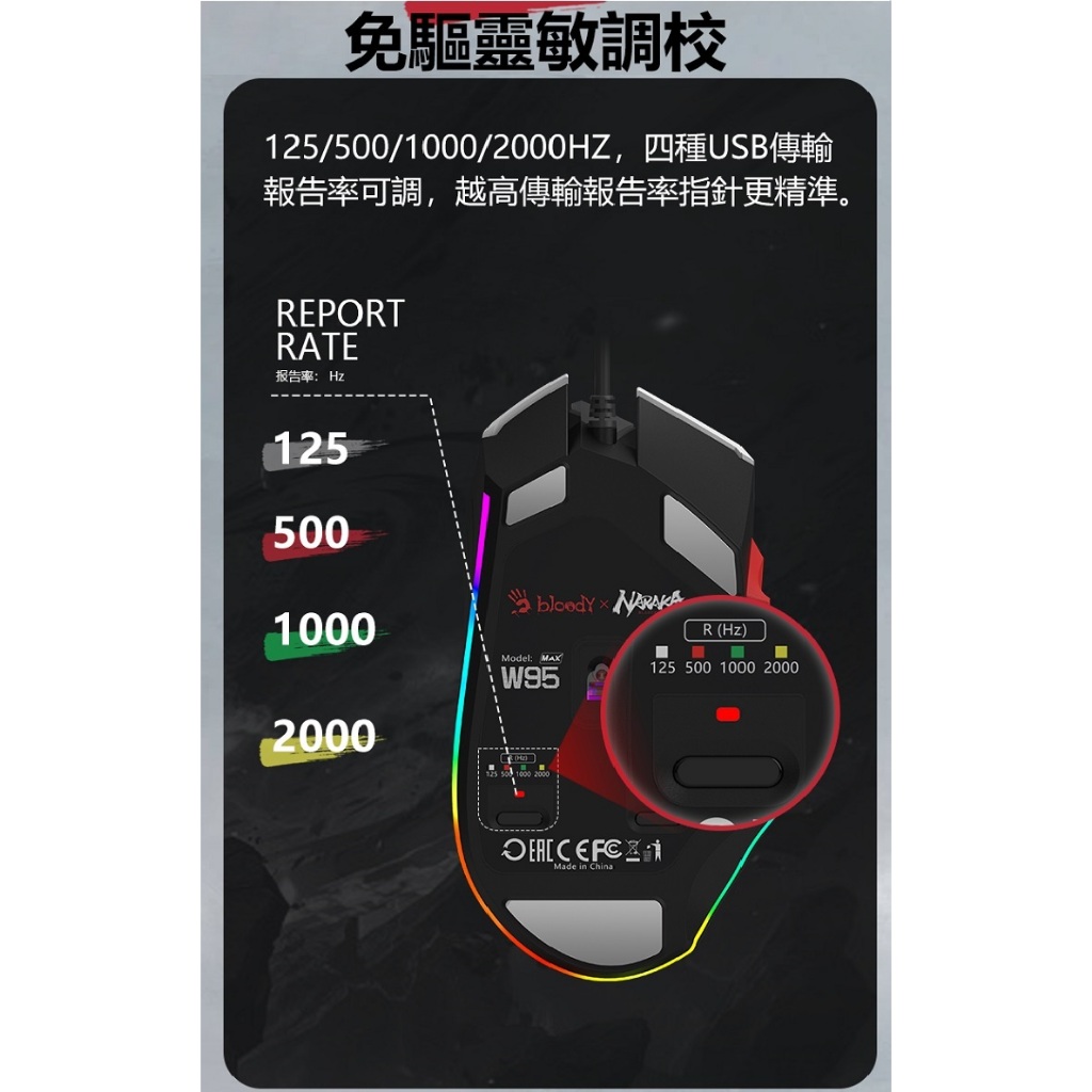 【A4 Bloody】- W95MAX 永劫無間威力三槍RGB電競滑鼠(已激活)- 贈價值$350血手寶典 8