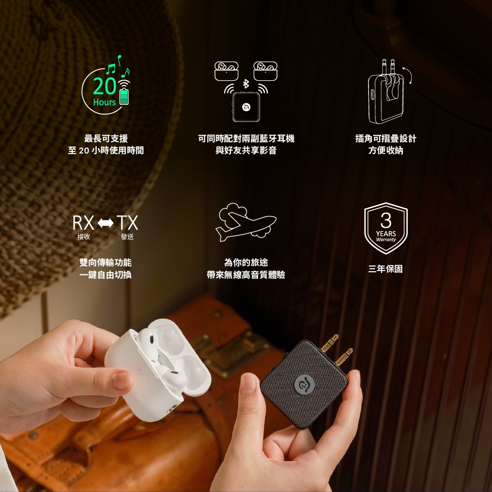 【ADAM 亞果元素】EVE II 飛機用藍牙音訊收發器 品牌旗艦店