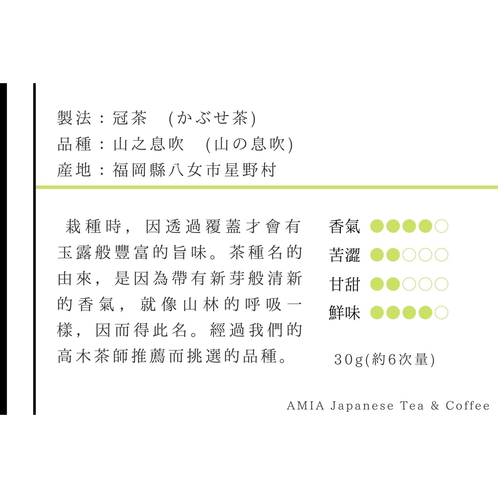 效期至23年6月【AMIA 覓芽】冠茶 品種茶 山之息吹 一番茶 綠茶 日本茶
