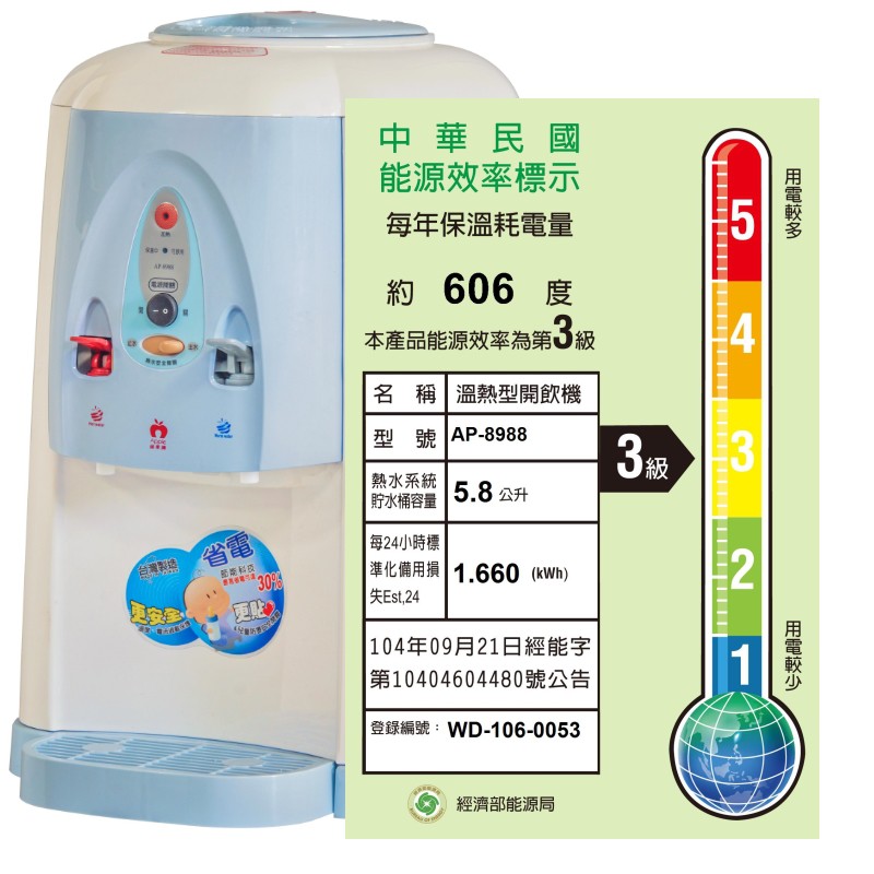 【APPLE蘋果牌】全開水溫熱開飲機AP-8988