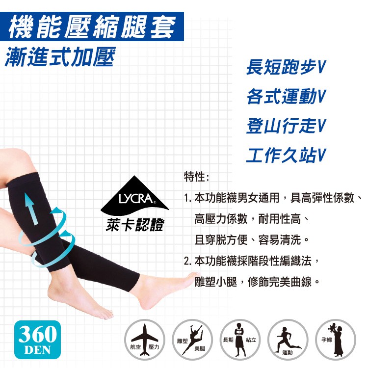 AMISS【機能腿套】360D萊卡機能壓縮腿套 台灣製 壓力腿套 運動小腿套 馬拉松慢跑 A605-5
