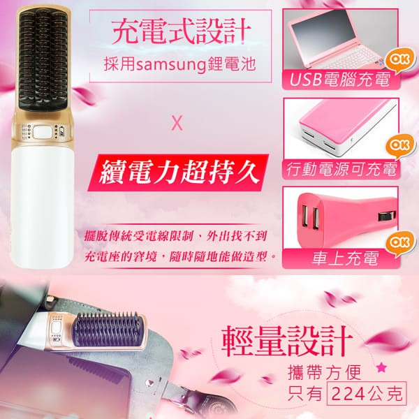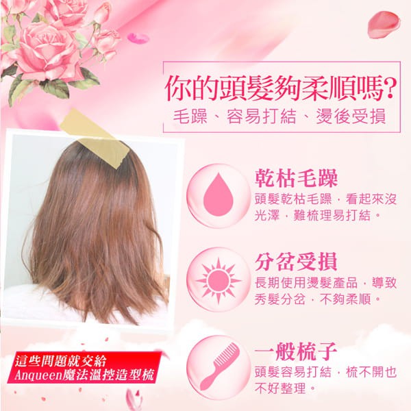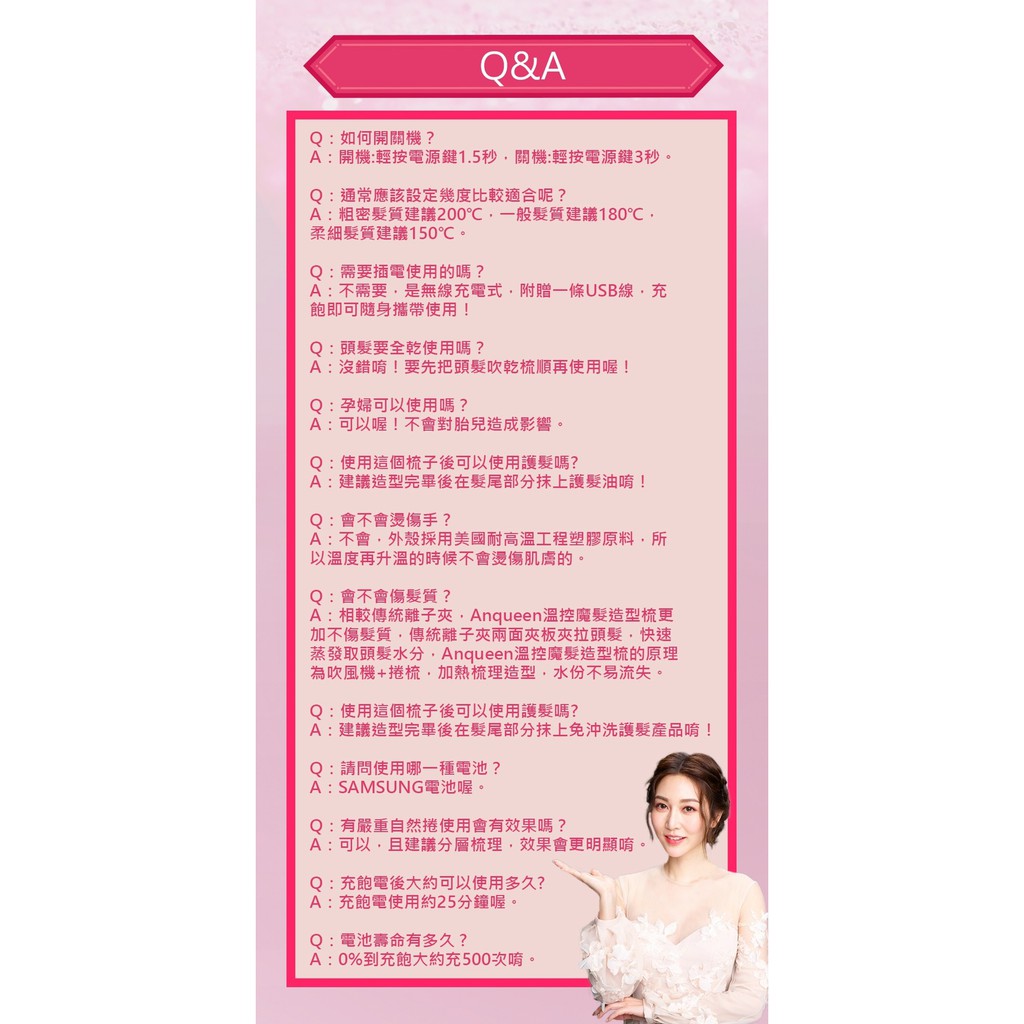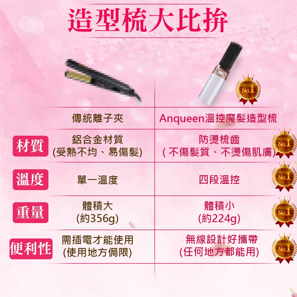 【Anqueen 安晴】無線溫控魔髮造型梳 QA-N17 USB充電 直髮梳 造型梳 捲髮梳 電捲棒 燙髮梳 公司貨