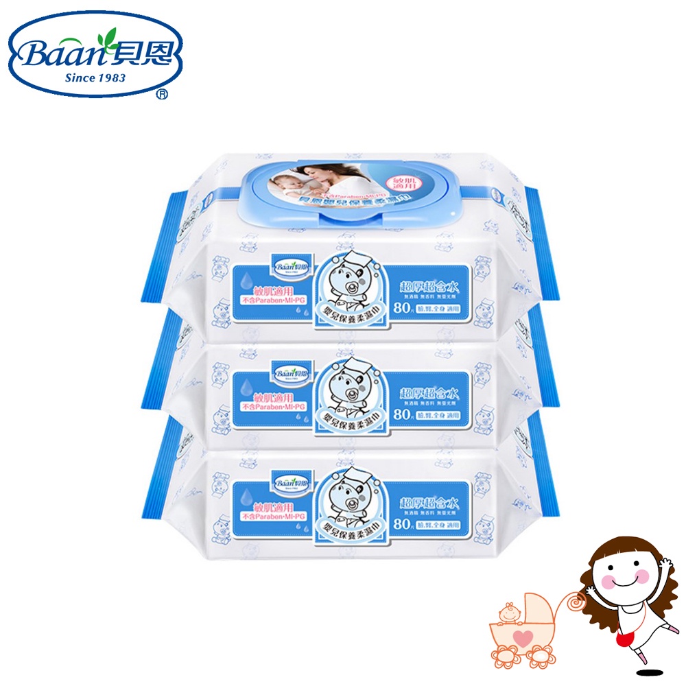 【Baan】 貝恩 嬰兒保養柔濕巾-無添加 Baby Wipes (80抽/3包)|寶貝俏媽咪