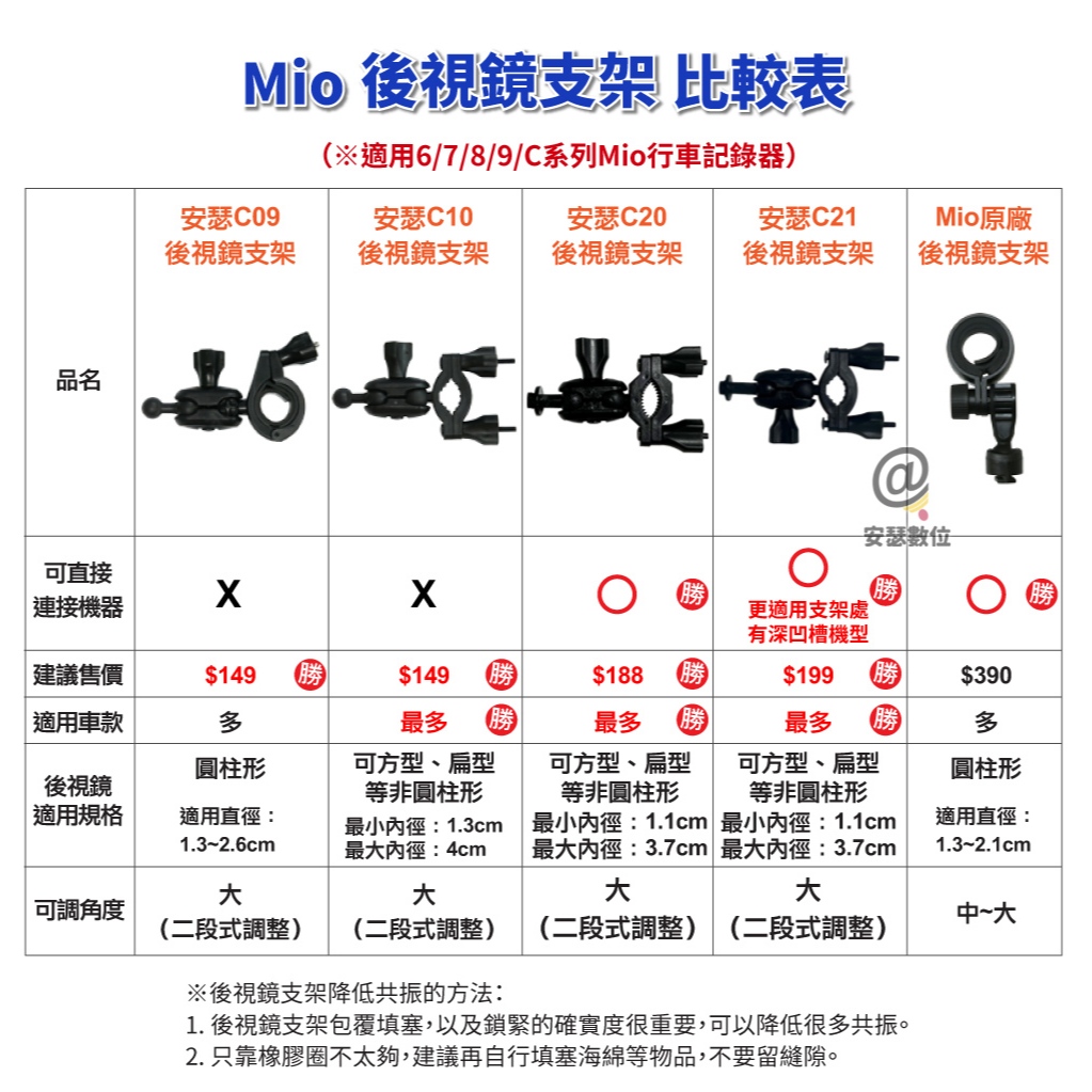【C20 MIO滑軌式 後視鏡支架】可直接連接MIO主機 後支 適用 6系列 C系列 7系列 8系列 9系列 C430