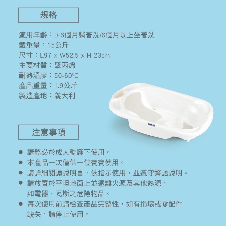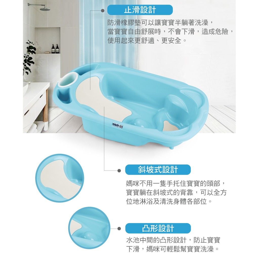 【CAM】義大利全功能嬰幼兒止滑洗澡盆/浴盆-白/淺藍 小丁婦幼 dingbaby