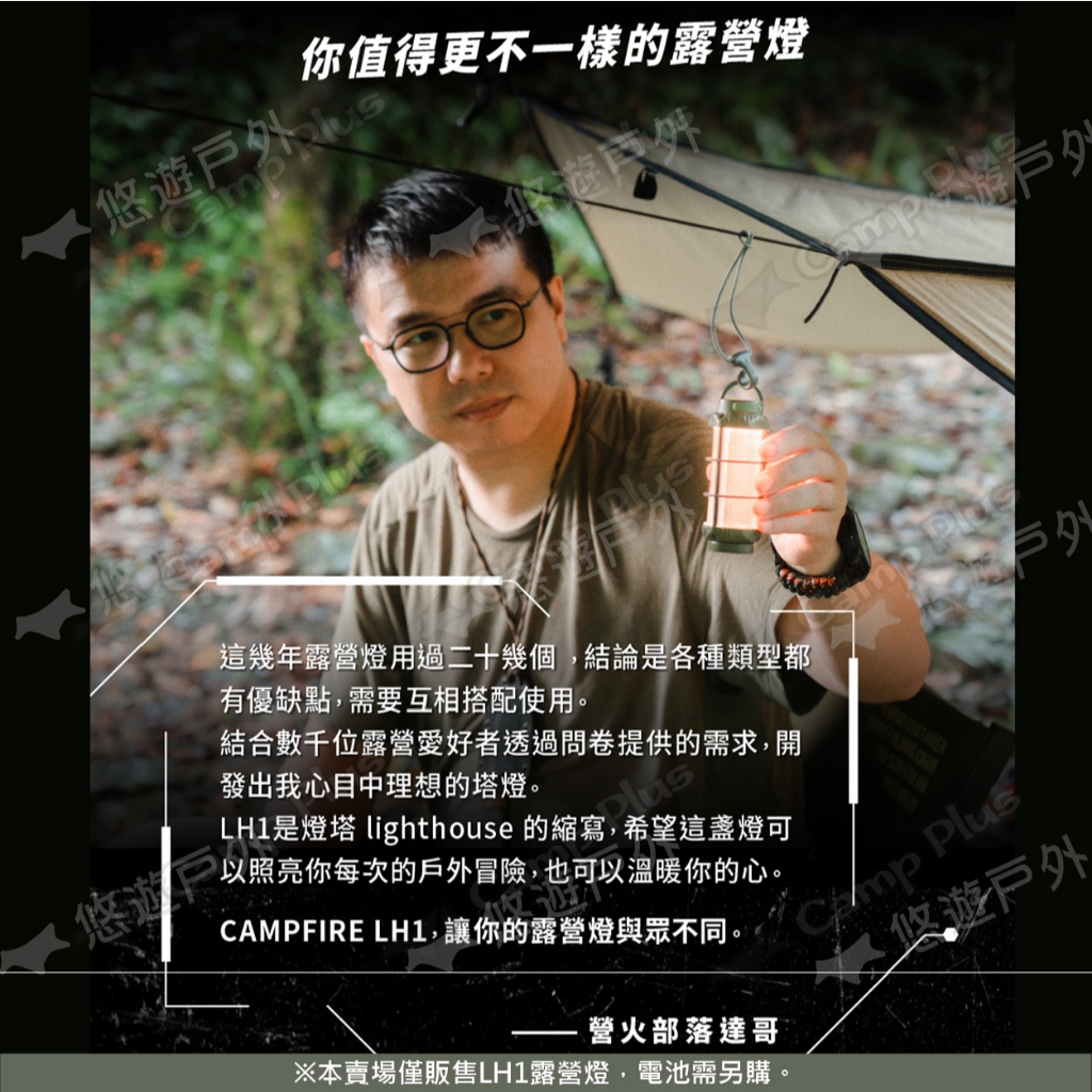 【CAMPFIRE】LH1露營燈 2色 送超薄磁吸燈罩 達哥推薦 三段亮度 防水防塵 Type-C 露營 悠遊戶外