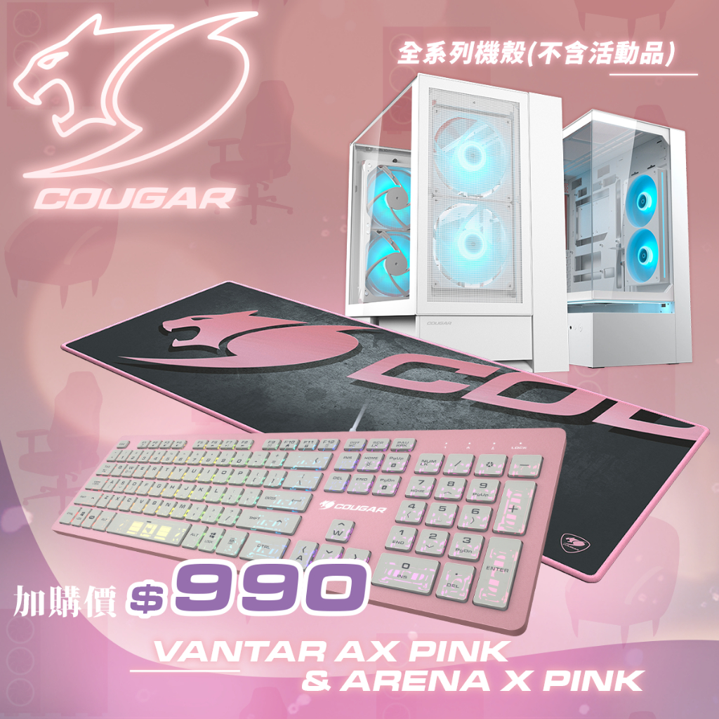 【COUGAR 美洲獅】VANTAR AX PINK 全鋁CNC剪刀腳RGB鍵盤 薄膜式電競鍵盤