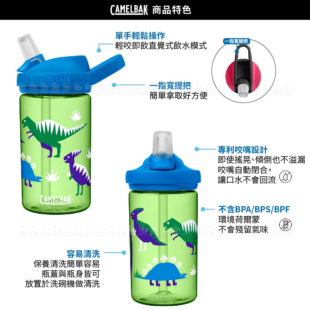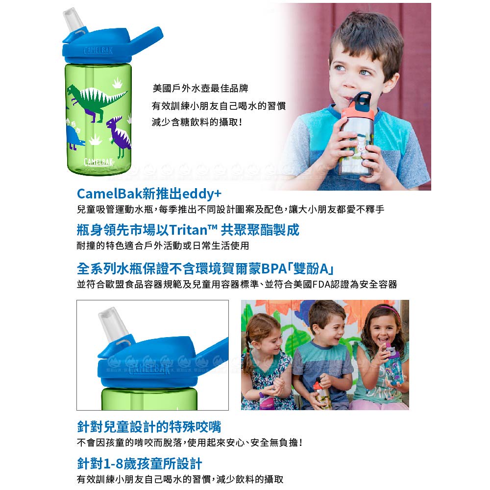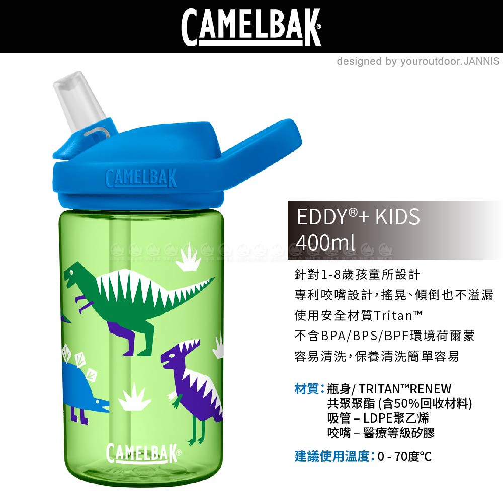 【CamelBak 美國 400ml eddy+kids兒童吸管運動水瓶《嘻哈恐龍》】CB2472301041/水壺