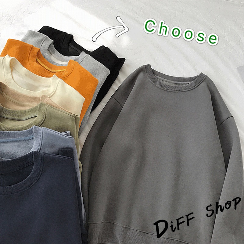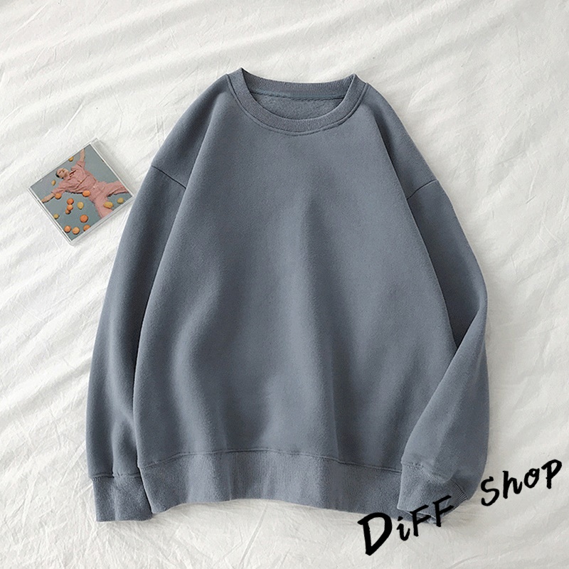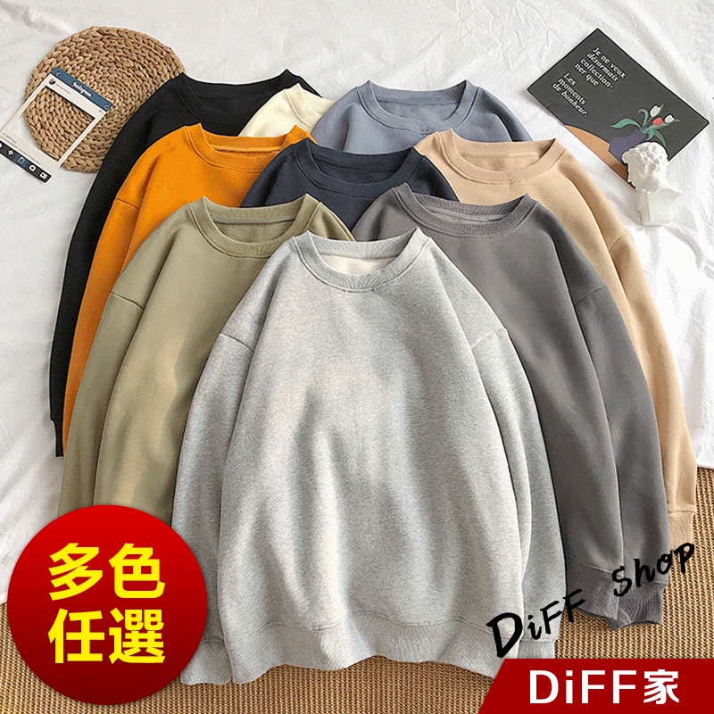 【DIFF】韓版刷毛寬鬆慵懶風長袖上衣 女裝 衣服 寬鬆上衣長袖t恤 冬裝 發熱衣 素T 素色 大學T【W21】