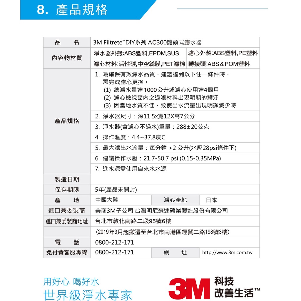 【Dr.Life生活館】3M AC300龍頭式濾水器特惠組(內附濾芯2入).DIY系列.可生飲.租屋族.原廠公司貨