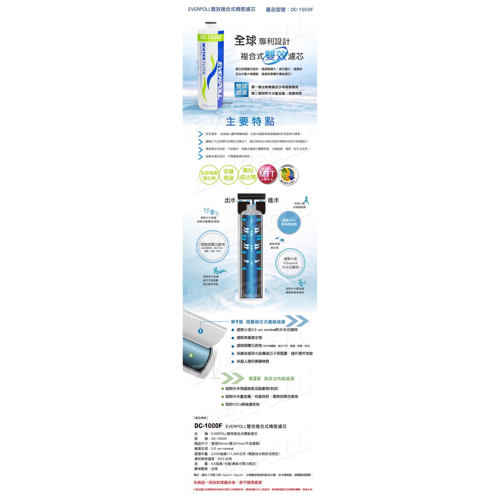 【EVERPOLL】雙效生飲濾心DC-1000F ★適用於淨水器DC-1000、全效淨水器DCP-3000