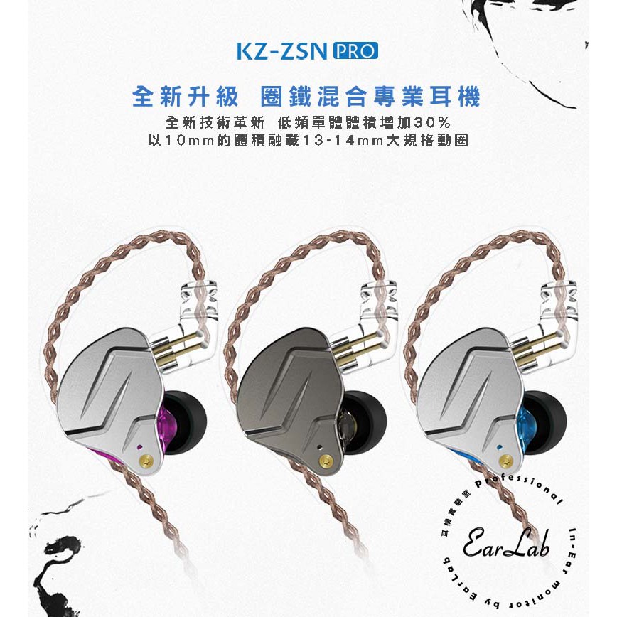 【EarLab】KZ - ZSN PRO 圈鐵複合式單元監聽耳機 原廠公司貨 開立發票 圈鐵耳機
