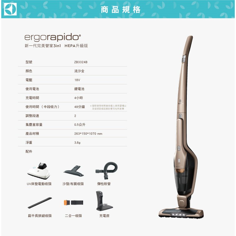 【Electrolux 伊萊克斯】贈電動清潔機 ZB3324B 完美管家 手持直立式 2合1兩用無線吸塵器|淨蹣科技