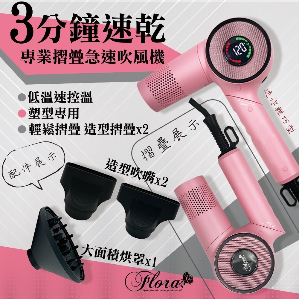 【FLORA|專業摺疊極速吹風機】LD-230 迷你輕巧型 摺疊吹風機 磁吸吹嘴 LD230_Kimi極美職人推薦