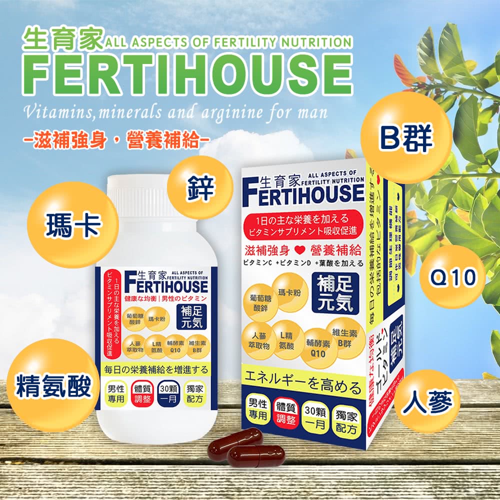 【Fertihouse生育家】男性綜合維他命膠囊 30顆/1月份 調整體質 瑪卡 鋅 精胺酸 B群 人蔘【壹品藥局】